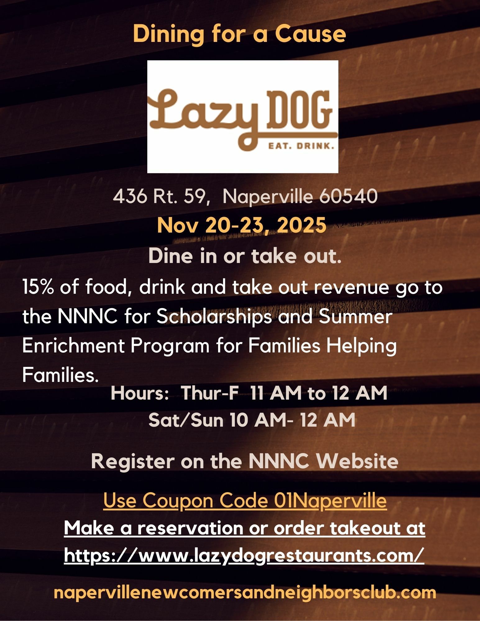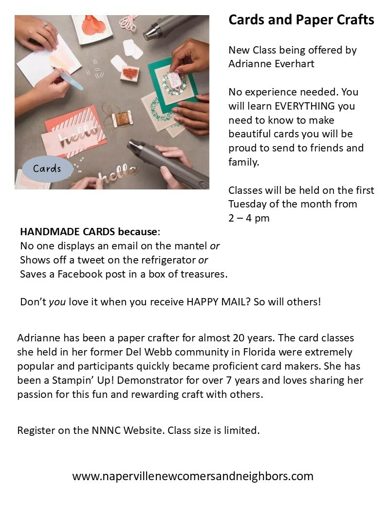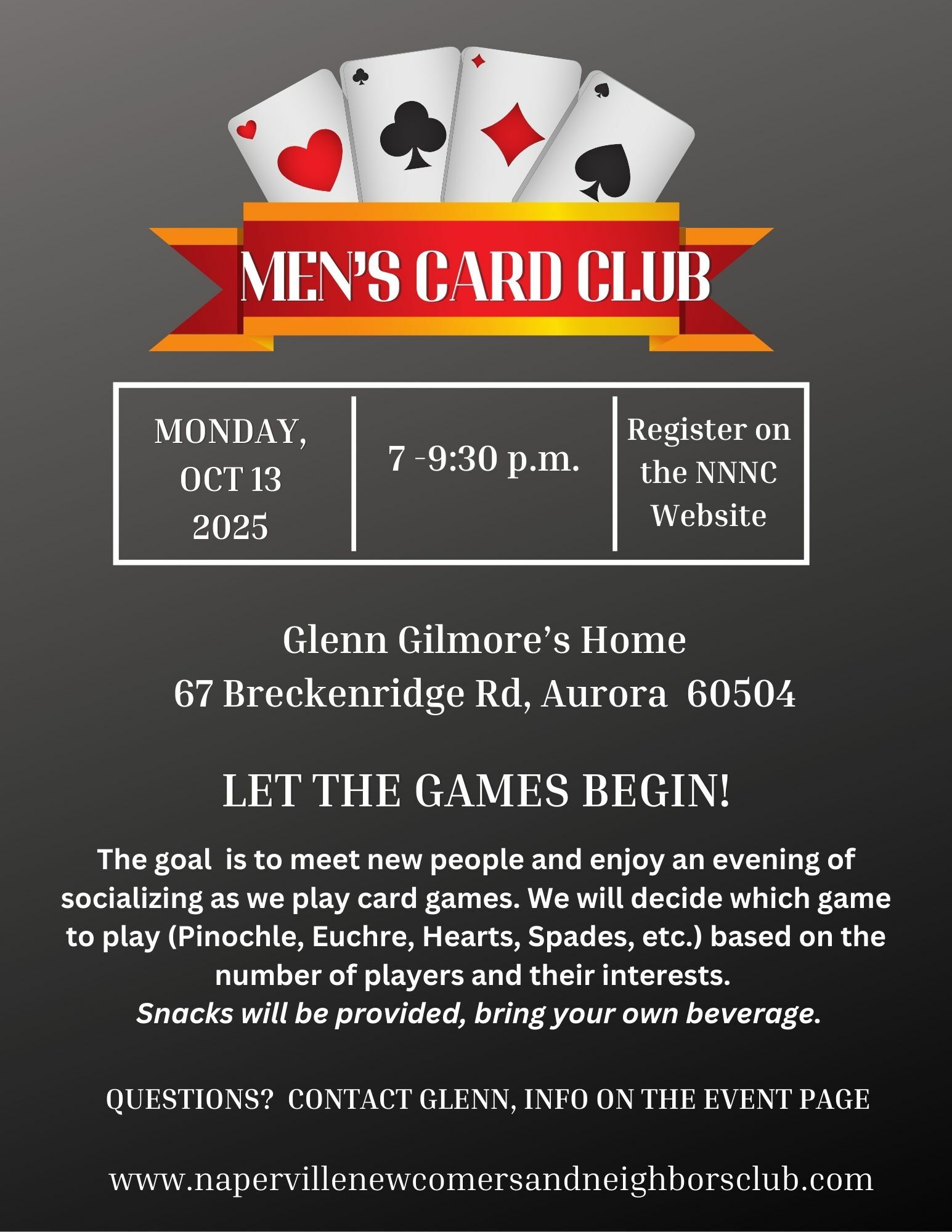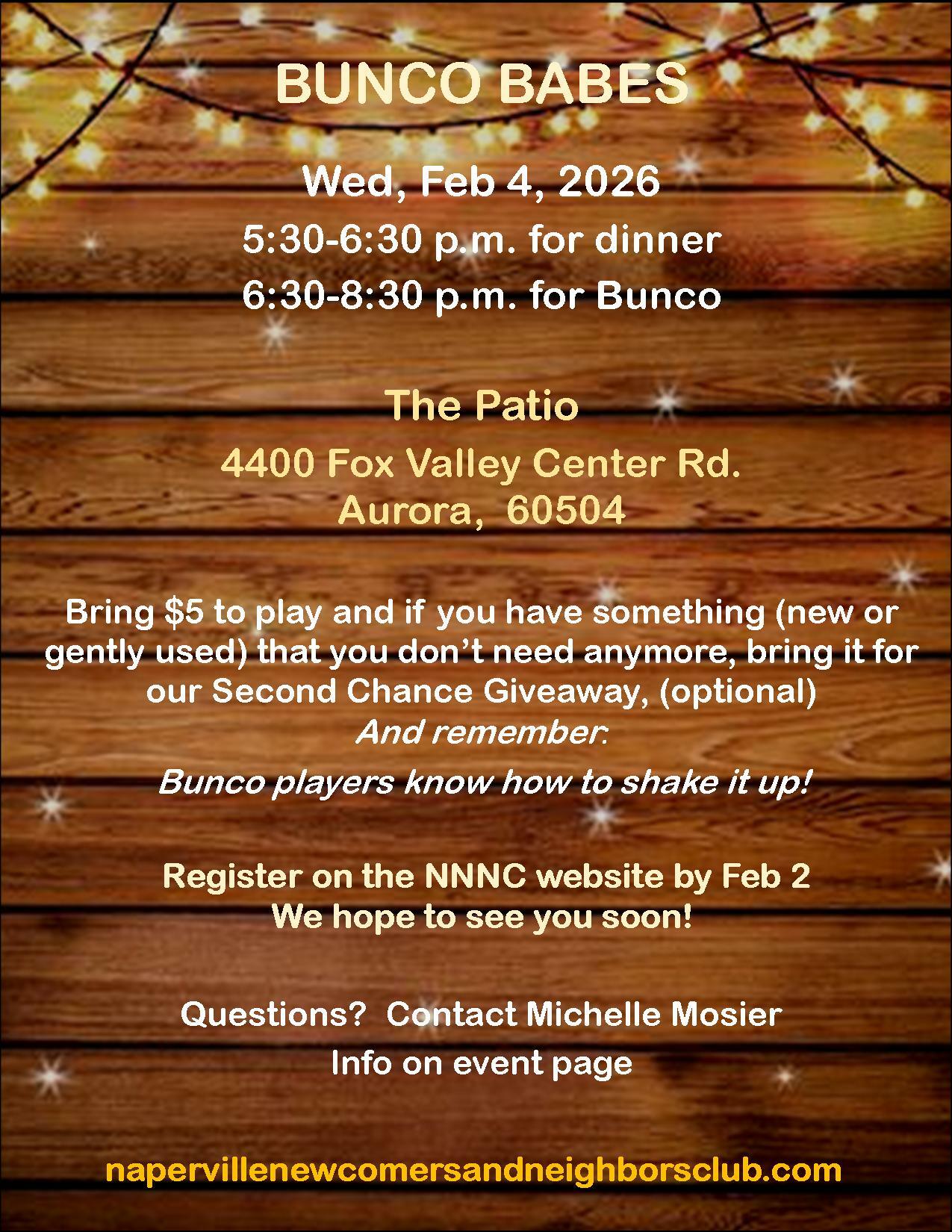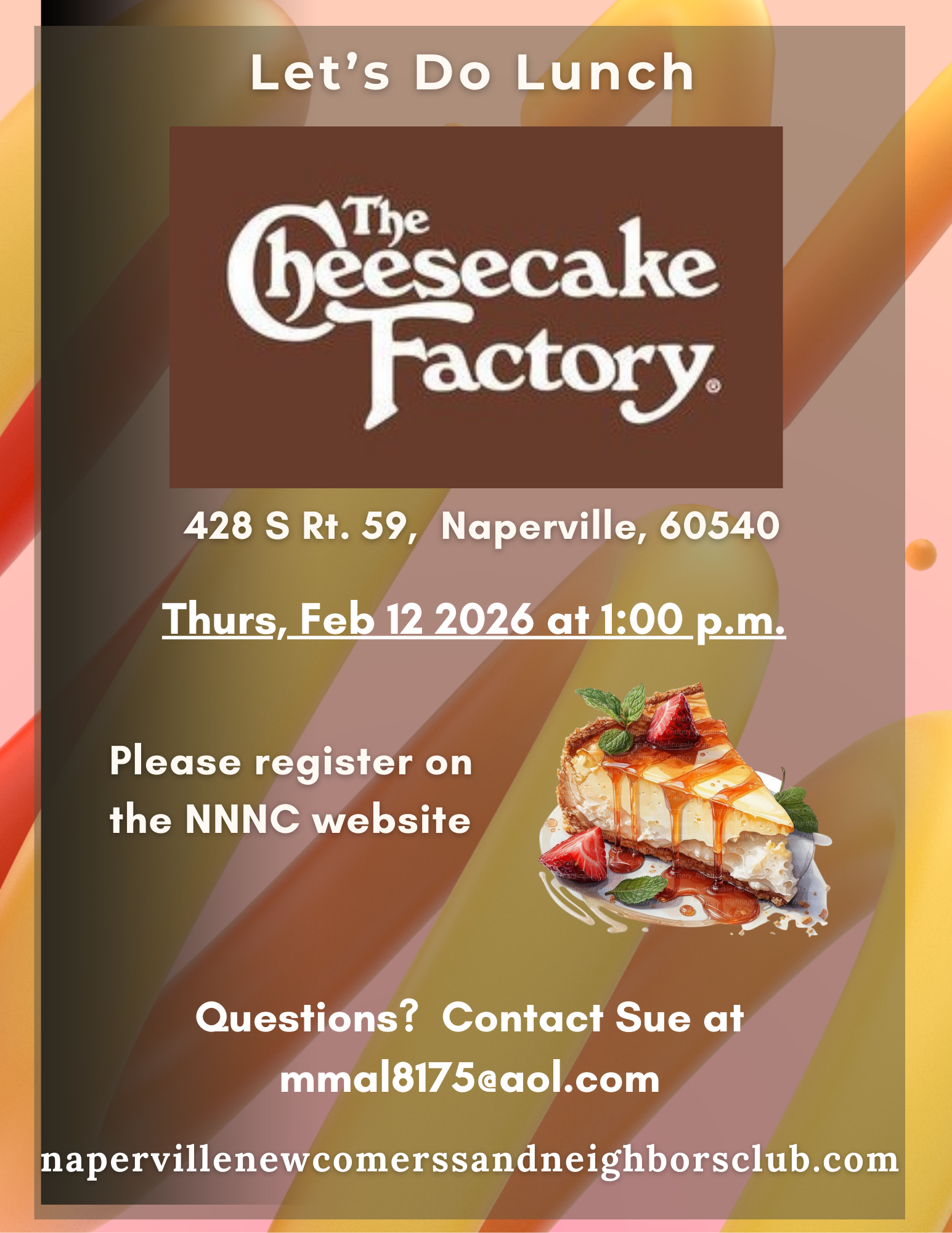 Whether you are new to Naperville or a long-time neighbor of the area, we would love to have you join our club and be part of the wonderful life here in the area. We have many activities and events throughout the year, so joining the NNNC is your bridge to fun and friendship.
