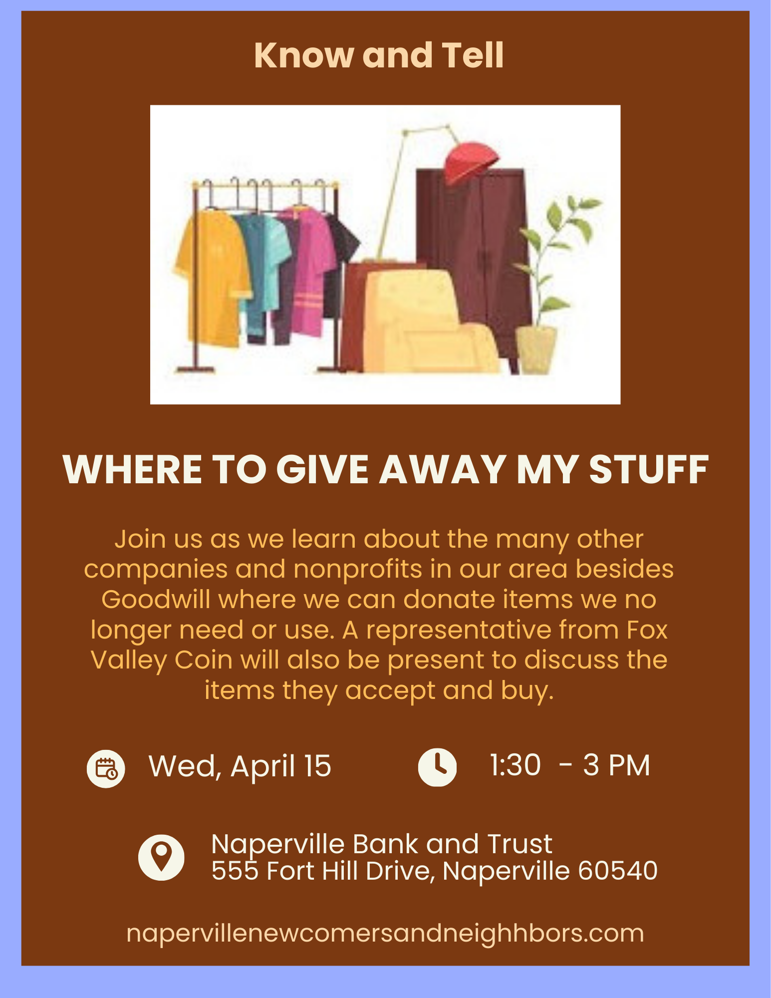 Our 300+ members have lived in the Naperville area for days or decades, range in age from 30+ to 80+, and have diverse backgrounds and interests. What we have in common is the desire to explore the opportunities that surround us. Naperville has a huge number of outdoor, cultural, educational and entertainment choices to offer. Why not explore them with new friends made at the Naperville Newcomers and Neighbors Club? We all have our unique experiences and talents to share!