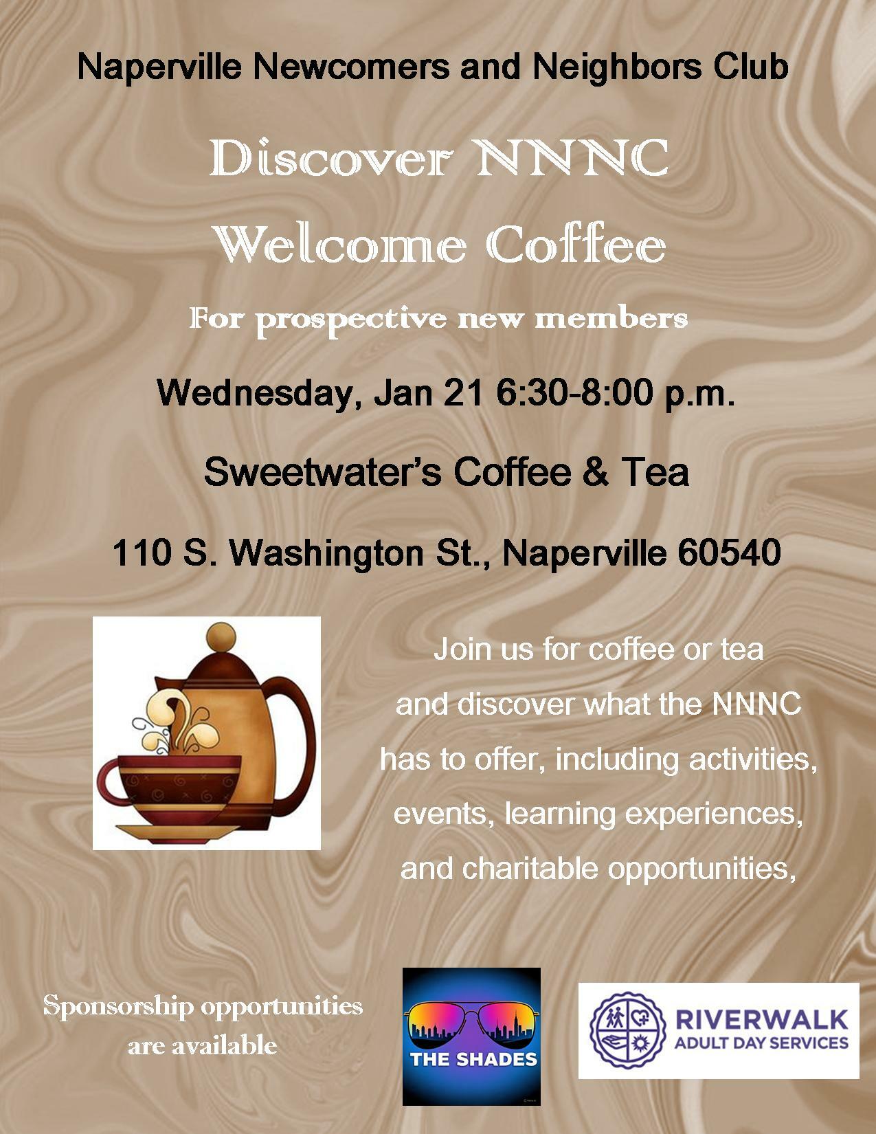 Naperville Newcomers and Neighbors Club is a non-profit, community organization welcoming newcomers and established residents of Naperville and the surrounding areas. Members meet and create friendships by participating in social, educational and charitable activities. Get to know us at a bi-monthly Discover NNNC Coffee, and then choose from a wide selection of activities. We have something for everyone! NNNC hosts more than 40 different activity groups as well as Welcome Coffees, special events and volunteering opportunities. Our Homepage and Event Calendar will give you a complete look at our current and upcoming schedule.
