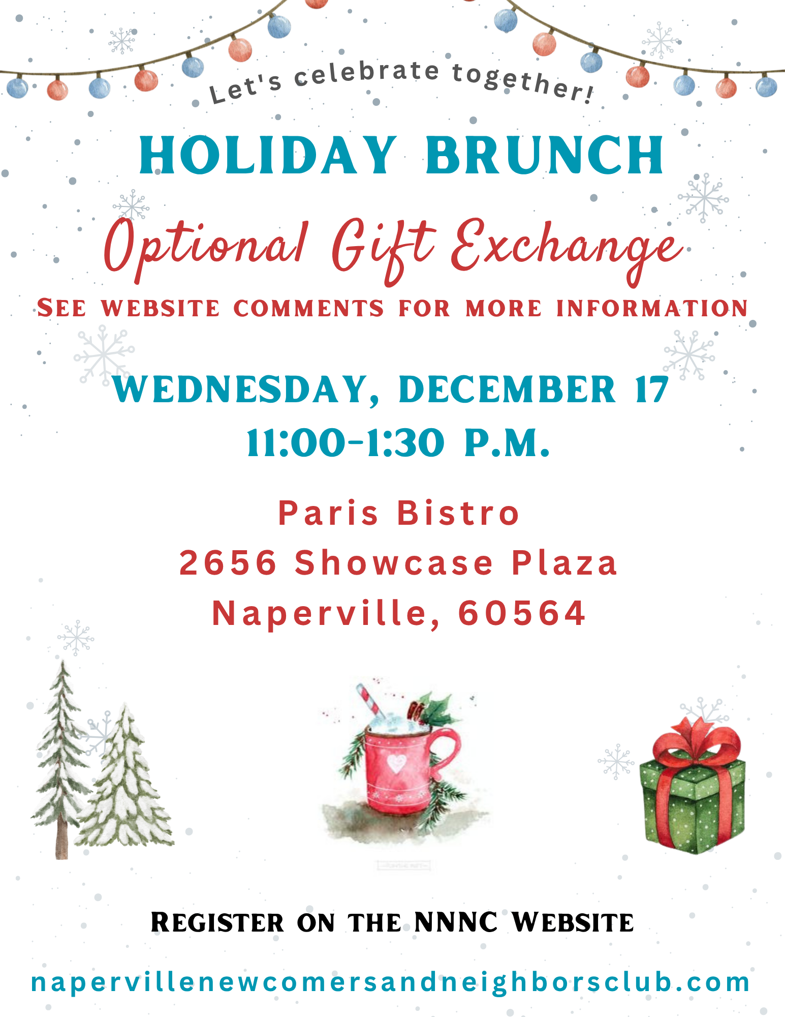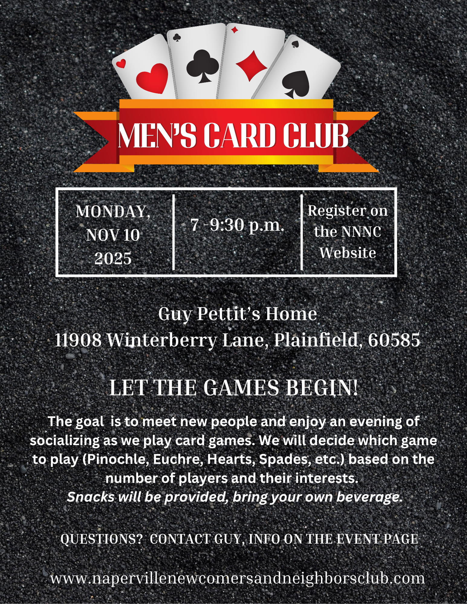 Whether you are new to Naperville or a long-time neighbor of the area, we would love to have you join our club and be part of the wonderful life here in the area. We have many activities and events throughout the year, so joining the NNNC is your bridge to fun and friendship.